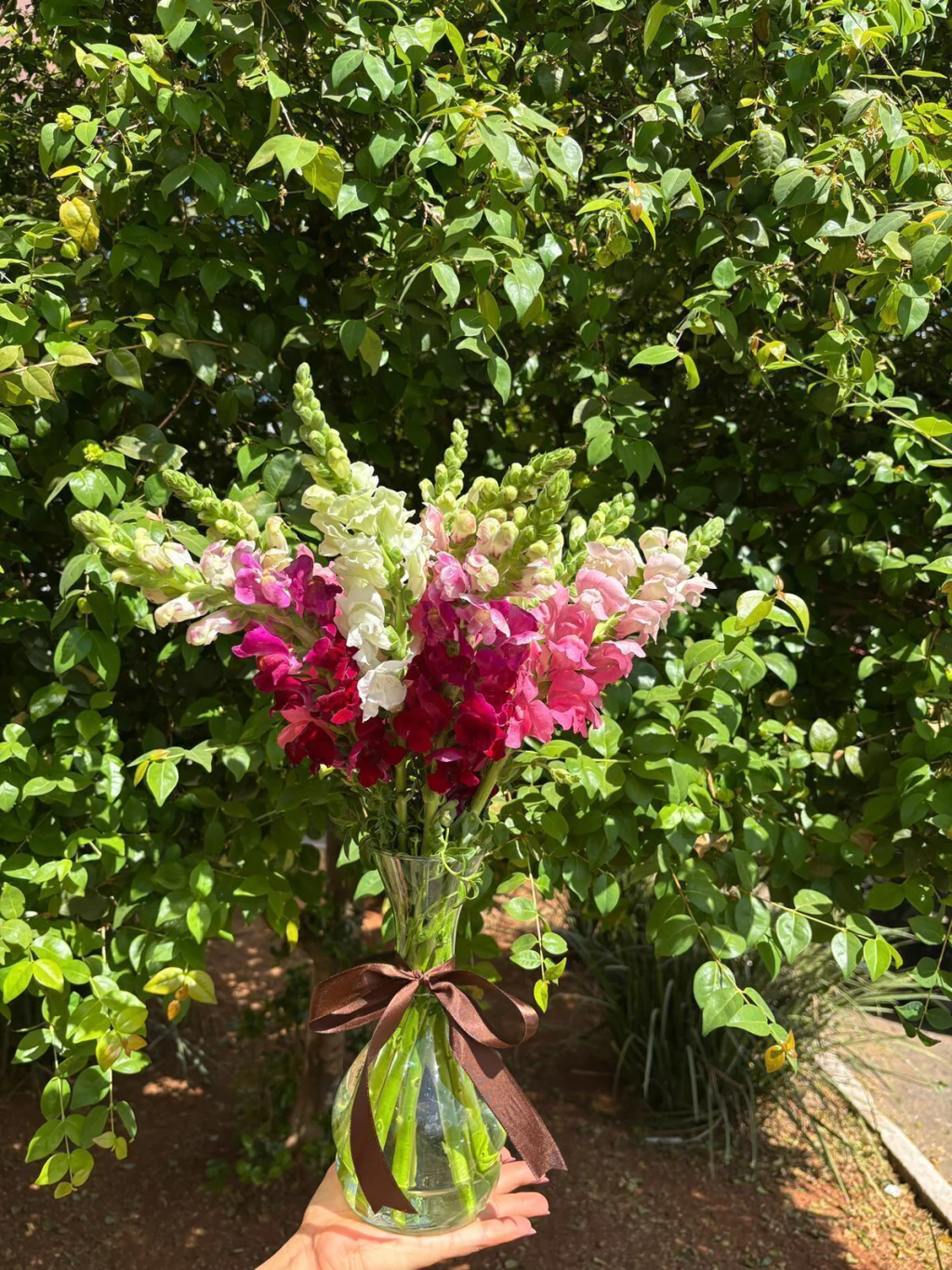 Vaso valentina composto por 10 boca de leão noas cores: rosa, vinho e branca